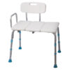 - A removable push-button armrest supports transferring in and out of the bathtub.