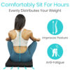 Designed to fit standard wheelchairs and office chairs, it’s both portable and secure with its nonslip base. It offers ample cushioning for comfort in various seating situations.