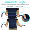 Constructed with a durable steel frame, the bariatric offset cane safely supports up to 600 pounds. The heavy-duty offset cane is easily adjustable from 29” to 38” to comfortably fit most adults. Dual security features include two push-button adjustment pins with a secure locking ring to ensure that the cane stays at the set height without slipping or rattling.