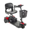 - The Scout transportable scooter combines easy and convenient mobility with superior value. The Scout is compact, lightweight and easy to disassemble-perfect for taking wherever you want to go, either around the neighborhood or far from home. It can be disassembled quickly and easily into five easy-to-handle pieces for loading into a car, truck, or van and taking shopping or on vacation. The three-wheel version of the Scout allows for nimbly negotiating indoor obstacles. The Scout also offers great features like a quick connect battery pack and a delta-style tiller to make operating the scooter easier for those with limited strength or dexterity. This model comes with color-through panels to hide scuffs and scratches and black wheel rims.