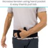 Constructed with a latex-free neoprene blend, the Vive SI belt is lightweight and breathable. The hip belt is easy to adjust to fit hip measurements up to 55” with easy pull tabs and a hand pocket for ensuring a comfortable fit. Lined with a textured, nonslip material, the SI joint belt remains securely in place whether you are seated or on the go and is slim to be easily worn under regular and loose fit clothing.